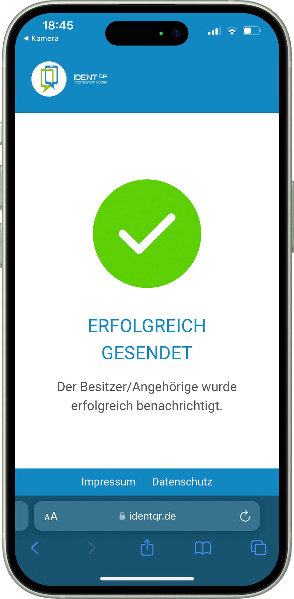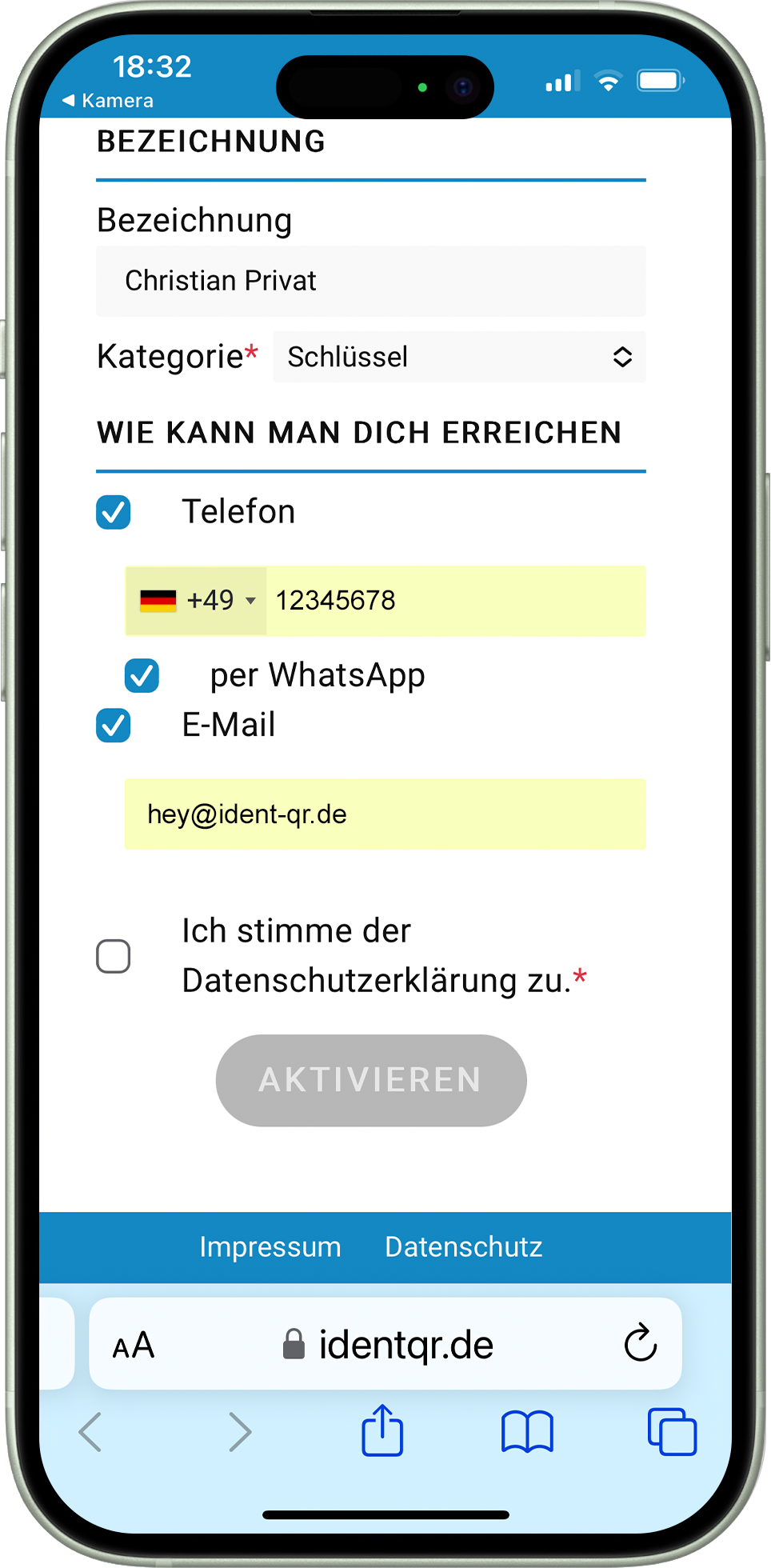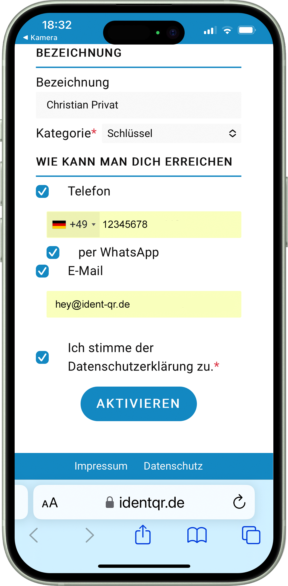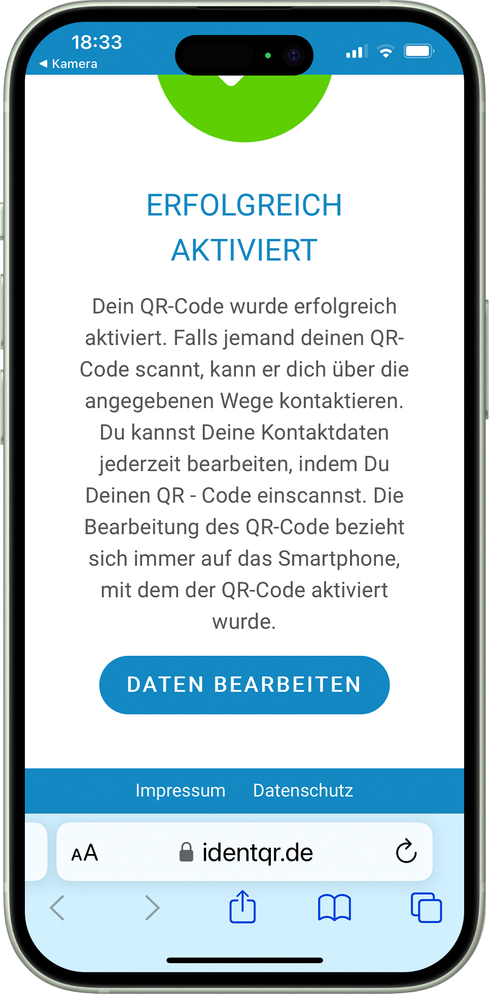 The mobile phone with which you activate an IDENT-QR is the "master mobile phone" for this and other IDENT-QRs. With the master mobile phone, you can change all entries in a few seconds when you scan your IDENT-QR again. We describe tips on how to do this here.
