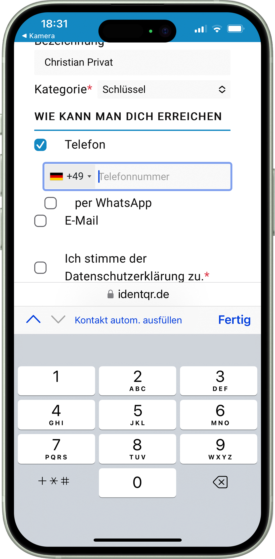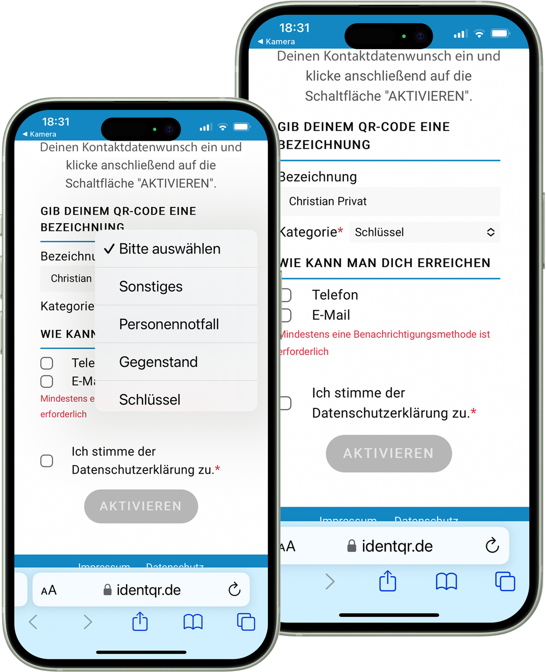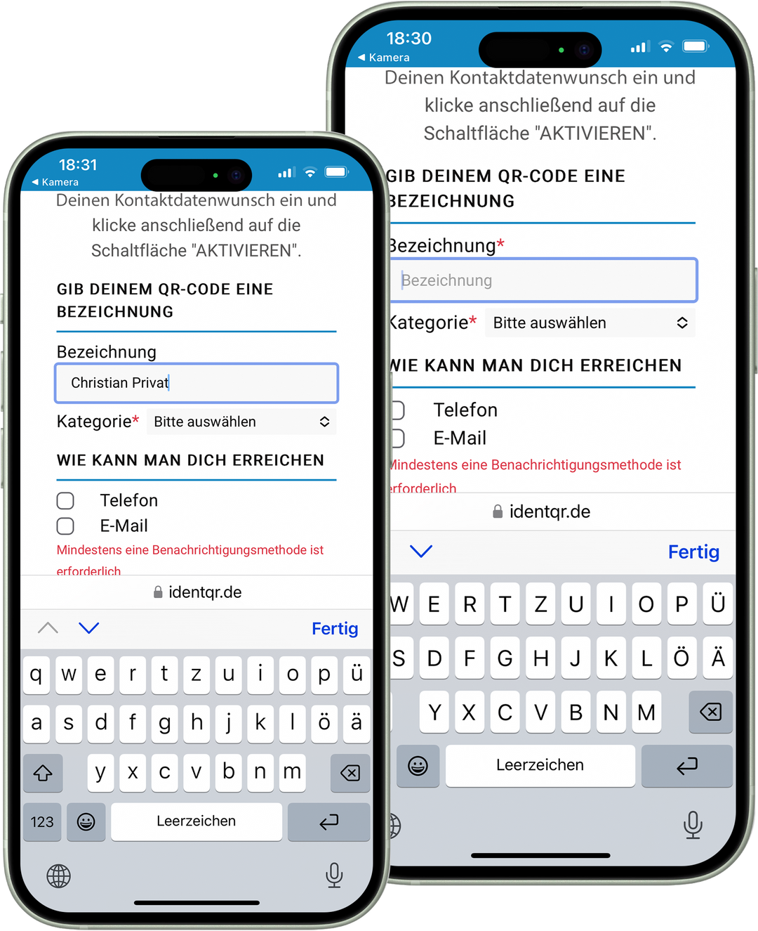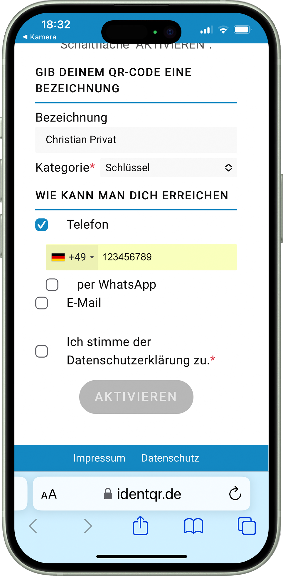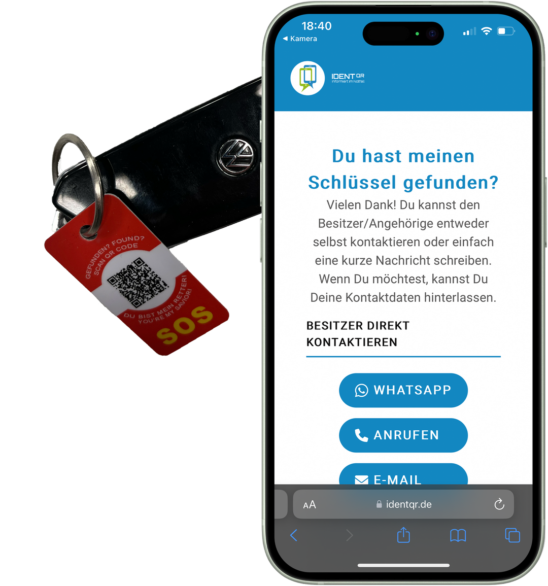 The mobile phone with which you activate an IDENT-QR is the "master mobile phone" for this and other IDENT-QRs. With the master mobile phone, you can change all entries in a few seconds when you scan your IDENT-QR again. We describe tips on how to do this here.